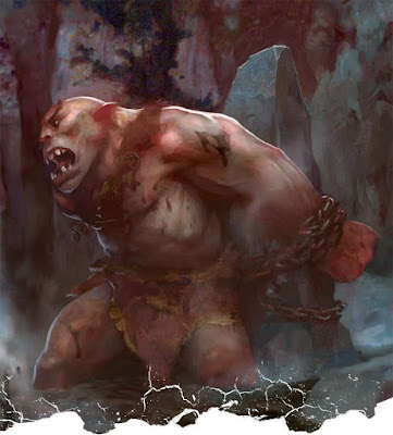 Soudain le reste des héros surgit à l’autre bout du défilé attirant sur eux les gardiens du gouffre de Kostchtchie. Rka se précipite à une vitesse surhumaine vers le groupe le plus important pour l’intercepter, sautant à travers les flammes sortis des naseaux des molosses pour attirer sur lui la vindicte des diables barbus. Aussitôt encerclé, il démontre à ses nouveaux compagnons comment il a réussi à survivre seul face aux dangers des enfers. Virevoltant au milieu de ses adversaires, il enchaîne les parades de sa rapière bénie, tranchant les tentacules barbelés qui hérissent le menton de ses adversaires et déviant leurs cruelles hallebardes par des boucliers de force impénétrables. Sur l’autre flanc, Ildur et Tengrim pulvérisent leur opposition avant de tourner leur attention vers le rocher où les merregons ont convergé autour de leur supérieur. Kri aurait déjà du être sur le diable à chaines en un bond mais son élan est brisé quand il est pris d’un vertige en croyant reconnaître son propre père défunt sous l’apparence infernale de sa cible. Lorsque Thormund arrive à sa suite, il est trop tard et les gardes du corps au visage de porcelaine ont déjà resserré les rangs, laissant Mazer hors de portée de l’attaque des héros. Comprenant que quelque chose ne se passe pas comme prévu, Ildur et Tengrim renonce à aller soutenir Rka et lancent plutôt leurs attaques vers Mazer. Le nain invoque la puissance de Clanggedin dont le faisceau de lumière divine qui aurait du guider les frappes suivantes sur le diable à chaines est intercepté par un merregon qui se jette sur son trajet pour faire barrage de son corps. Le ranger, dont la cadence de tir est surmultipliée par la magie de vitesse de Guerne, oblige les autres merregons à se porter en avant pour encaisser la volée de flèche destinée à Mazer. Aussitôt Kri, qui a retrouvé la clarté de son esprit, profite de l’ouverture pour se jeter dans la mêlée. De sa grande lance, il écarte le dernier merregon pour offrir un boulevard à Thormund qui entre en scène avec un cri de rage.